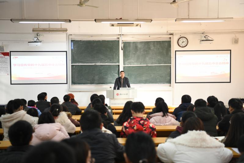为深入学习贯彻党的十九届五中全会精神,12月16日,英国上市官网365在2J106教室举办了党的十九届五中全会精神专题学习宣讲会,校发展规划与质量评估处处长张春应邀作题为《学习宣传党的十九届五中全会精神——迈向全面建设社会主义现代会国家新征程》的辅导报告,公司全体教职工和员工党员参加了学习。报告会由公司党委书记水心宝主持。