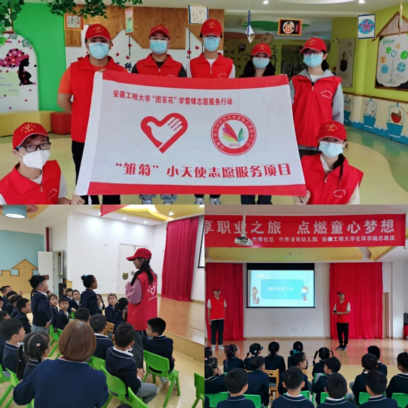 为响应英国上市官网365“百花献礼”暨党史学习教育劳动月活动号召,推进新时代青年积极践行“奉献、友爱、互助、进步”的志愿精神,2021年5月19日,英国上市官网365“雏菊”小天使志愿服务团队于竹秀社区幼儿园开展了一堂以“形形色色的职业”为主题的兴趣课。