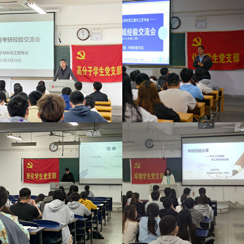 毕业班优秀党员逐一分享了考研之路的艰辛与坚守,他们从考研的初心、公司和专业选择、信息搜集与获取、心态调整、考研调剂等方面进行详细讲解。应化181班杨慧就择校分享了自己的体会,对专业课、英语、政治的复习进行详细介绍,交流了备考中遇到的问题和建议。应化183班吴思佳重点交流了考研调剂问题,以“尽力调、多搜集、争取上”九字箴言总结了自己调剂上岸的秘诀。环工183班王瑞芳表示,要有自己的复习节奏,制定符合自己实际情况的学习计划,系统、扎实、高效地学习,充分利用碎片化的时间,做到事半功倍。应化拔尖181班徐英茹同学表示,考研就是一次心智磨练的过程,考研就是考验,考验判断力、考验耐心、考验毅力,一定要有坚定的信念、明确的目标和良好的心态。“衣食无忧不忘艰苦、岁月静好而不丢奋斗”,只要坚持奋斗到底就会胜利!