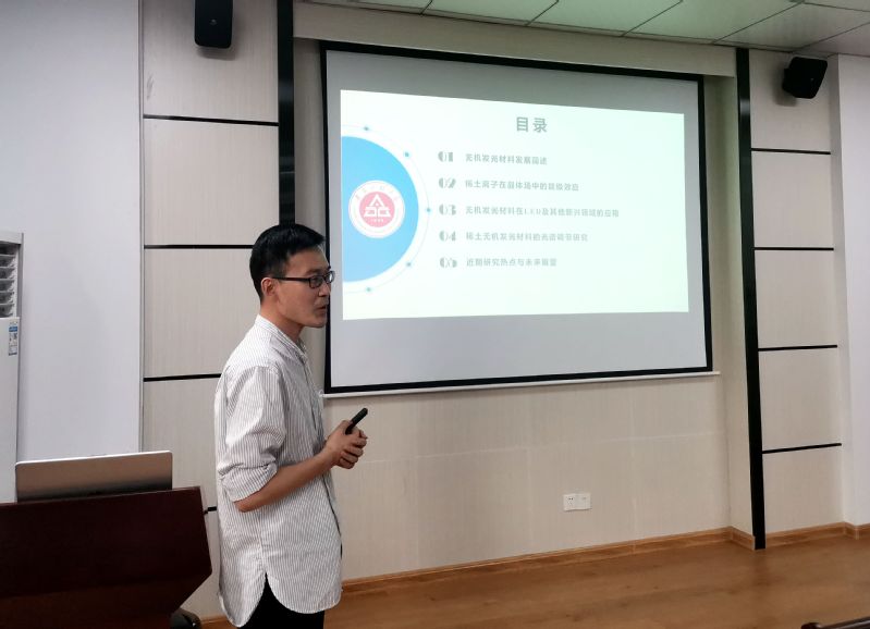 王宝辰博士毕业于中国地质大学,主要从事无机发光材料及器件的研究工作,他的报告题目为“无机发光材料的发展与应用”。报告综述了稀土无机发光材料的发展历史、主要应用领域及发展前景,稀土无机发光材料在LED照明、显示器背光源、医学成像、荧光温度计等领域的广泛应用,王宝辰和大家分享了其在该领域的研究成果。