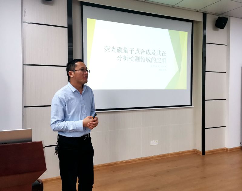 傅应强博士主要从事碳量子点合成及荧光检测、人工神经网络多组分分析以及粒子扩散过程计算机建模与仿真等研究。他在题为“荧光碳量子点合成及其在分析检测领域的应用”的报告中,介绍了碳量子点优异的光稳定性、小尺寸、良好的生物相容性,可调的光致发光、卓越的多光子激发(上转换)、电化学发光以及化学惰性等特性,同时分享了其研究团队发展的新合成方法和表面修饰技术,该技术实现了不同荧光激发和发射的荧光碳量子点制备,研究成果可在药物检测领域应用。