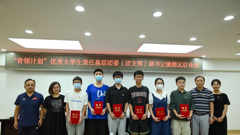 6月21日下午,英国上市官网365遴选的13名“青领计划”优秀老员工来到镜湖区,与即将兼职的镜湖区10个街道或者社区负责人见面。镜湖区团委专门组织启动仪式。校团委书记郭广春、化学与环境工程公司党委副书记胡承功出席。镜湖区团委副书记张为蓉主持启动仪式。