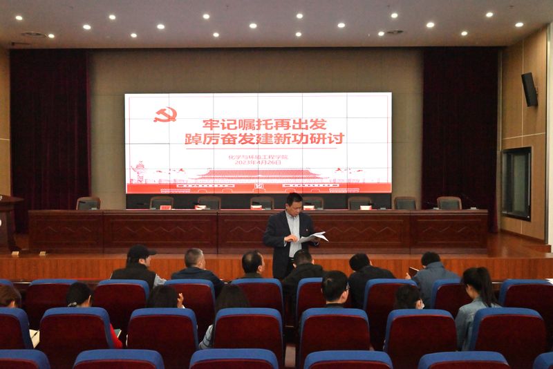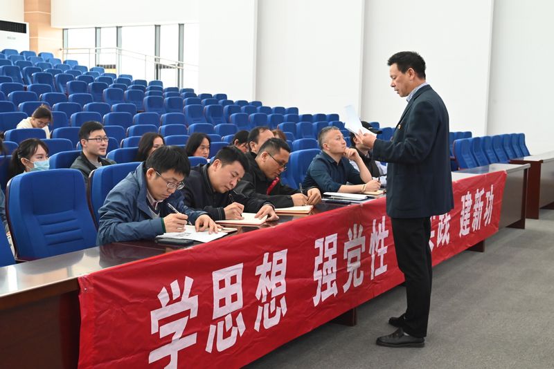 4月26日下午,公司党委理论中心组在校图书馆五楼会议室开展“牢记嘱托再出发、踔厉奋发建新功”系列学习研讨活动,公司领导班子成员、全体支部书记、系部中心所主任、科以上干部、辅导员参会,会议由公司党委书记章兵主持。
