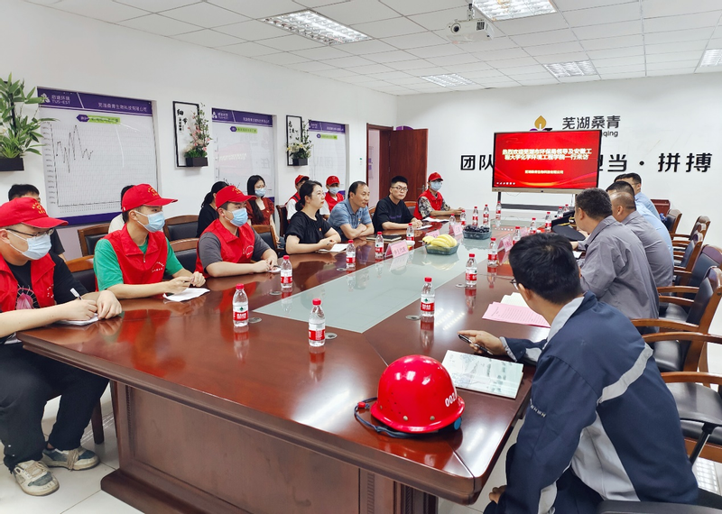 芜湖桑青生物科技有限公司是芜湖市唯一家进行餐厨废弃物回收利用和无害化处理企业,公司总经理张晓昆介绍了企业基本概况及目前运营情况,相关技术人员带领支部党员员工参观企业生产线,并详细讲解餐厨废弃物无害化处理过程及主要工艺,通过预处理加厌氧发酵后现实餐厨垃圾资源的“变废为宝”。参观过程中,支部同学们结合专业知识与企业技术人员进行深入沟通交流,实现书本知识与实践的转化连接,加深了对生产一线实际情况的了解,进一步增强支部党员员工党性修养与环境保护意识。