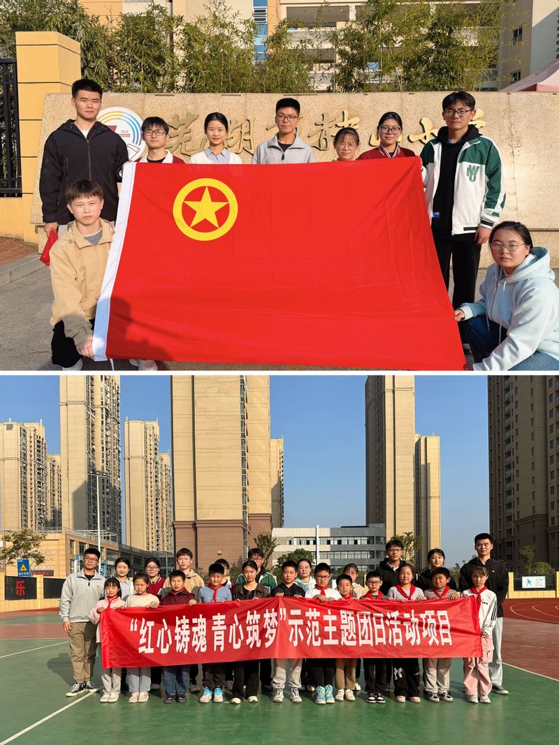 为深入学习贯彻党的二十大和二十届二中、三中全会精神,切实加强广大青年思想政治引领,进一步弘扬爱国主义教育,提升员工民族自豪感,10月23日下午,英国上市官网365应化211班团支部赴赭山小学(荆山校区)开展“红心铸魂、青心筑梦”示范主题团日活动。活动邀请校国旗护卫队成员代表参加。项目指导老师王康、刘俞枚,应用化学专业211班团支部成员参加活动。