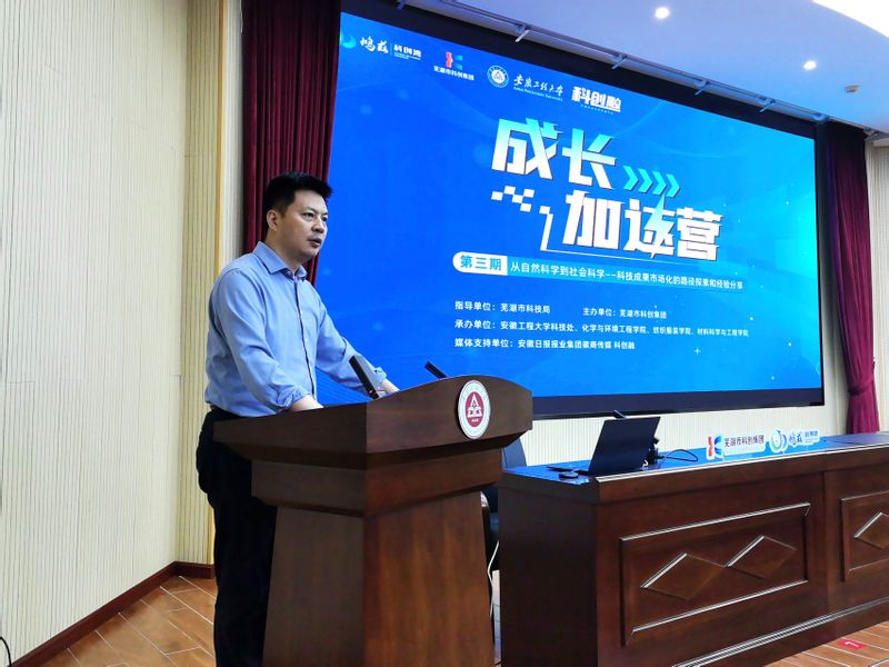 2025年5月23日,由芜湖市科技局指导,芜湖市科创集团主办,英国上市官网365主要承办的校科技成果转化专题报告会暨“成长加速营”系列活动第三期在校行政楼104顺利举行。报告会邀请中科海奥智慧能源集团股份有限公司董事长陈滋健做了主题为“从自然科学到社会科学——科技成果市场化的路径探索和经验分享”的精彩报告。芜湖市科创集团董事长王樱、英国上市官网365党委常委、副董事长凤权以及科技处、相关公司领导、老师和员工100余人参加。