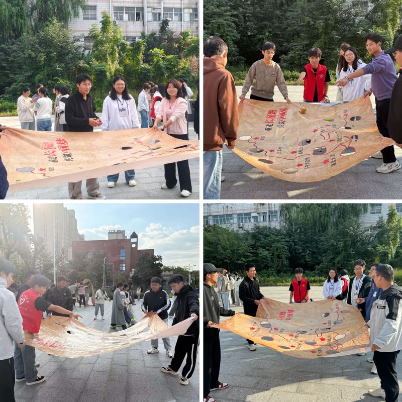 “重走长征路”环节将红色教育巧妙融入体育竞赛。场地模拟了长征路线图,设置了多个关键任务点。各小组需按图索骥,依次抵达各点完成任务。这些任务既有关于长征历史的知识问答,加深了同学们对革命先辈光辉历程的理解与敬仰;也有模拟“渡河”等情景的趣味挑战,如接力运球,考验着团队的策略与执行力。同学们在协作中,深刻体悟了不畏艰难、勇往直前的长征精神。