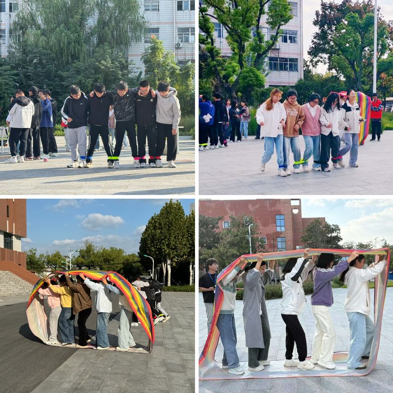 “五人六足”赛场充满了默契与节奏感。五人一组需绑腿完成折返跑。他们或搭着肩,或搂着腰,口中喊着统一的口号,“一二、一二”地努力向终点迈进。有的组合健步如飞,配合得天衣无缝;有的则略显踉跄,但彼此扶持,绝不放弃。这个经典项目极大地促进了同学间的信任与协调,展现了携手共进的力量。而“车轮滚滚”项目则考验整体协调性,队员们钻入特制环形履带,喊着整齐号子推动车轮前进,现场形成一道道移动的彩色波浪。