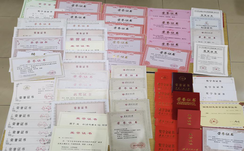 四年间,拔尖班员工在实验室潜心钻研、锻炼科研能力,在学科竞赛中齐头并进,硕果累累。在2018年的老员工节能减排大赛中,班级共有10余位同学3支队伍斩获了两项二等奖一项一等奖。在安徽省第二届老员工化学竞赛选拔赛中,拔尖班一共有14名同学获奖,且孟献富等4名同学成功入围省级决赛,取得三项特等奖一项一等奖的骄人成绩。拔尖班的杨旖璇同学在同年的安徽省“挑战杯”大型比赛中获得二等奖。除了专业类比赛外,同学们在其他学科比赛上的表现也不容小觑。在2019年的全国老员工英语竞赛中,拔尖班的孙明月同学在决赛中获得了一等奖佳绩,刘超等同学在数学建模比赛中也表现不俗。他们积极申报老员工科研研究项目,夏芬、黄子豪等同学不仅成功申请了专利一项,而且在《化工新型材料》期刊上发表了论文一篇。杨旖璇和李仁桂等同学也在老师的指导下在SCI上发表了论文。比赛和科研的成绩也给很多同学带来了奖学金和荣誉。其中突出的代表是夏芬同学,她不仅两次被评为国家奖学金,还获得国家电信奖学金、校“十佳老员工”和校鑫龙奖学金。